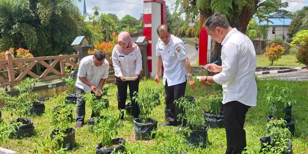 Kepala Badan Kesbangpol, Tinjau Program Tanam Cabai di Area Kantor Bersama Stafnya